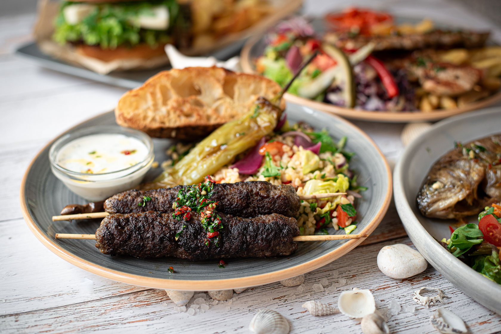 Korianderes, törökmogyorós darált marha- és bárányhús, lepény, mentás-joghurtos uborkasaláta/ minced beef and lamb, mixed with coriander and Turkish hazel, with the side of yogurt, mint cucumber salad and atbread